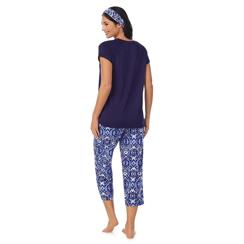 This women’s Cuddl Duds short sleeve pajama top and pajama capris sleep set will keep you comfortable all night long.